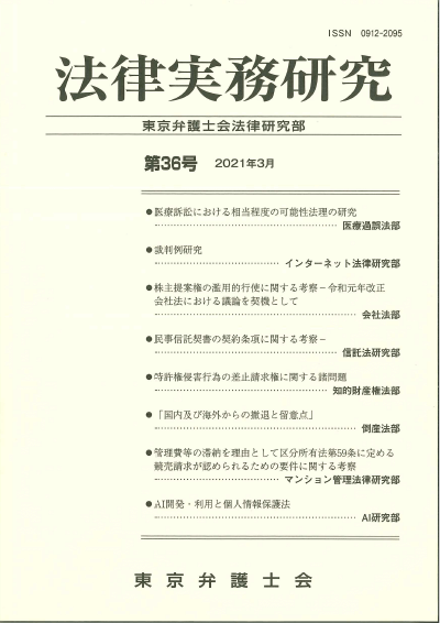 - 東京弁護士会法友全期会債権法改正プロジェクトチーム編「債権法改正を考える 弁護士からの提言」、第4章2執筆(第一法規)