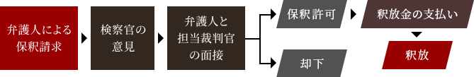 この弁護活動が成功した場合、被疑者は身柄拘束から解放されることを釈放とされます。