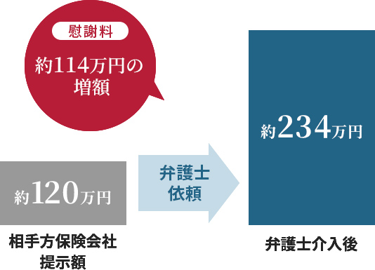 そこで弁護士が介入すれば、もっとも高い算定基準である弁護士基準に基づいて請求することができるため、適正な賠償を受けられる可能性を高めることが期待できます。