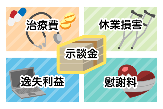 このほか、通院交通費、介護費用、車の修理費なども示談金に含まれます。
