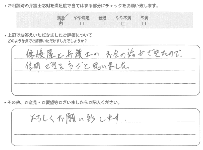 保険会社との交渉では、ご依頼者様の利益を一番に考えます
