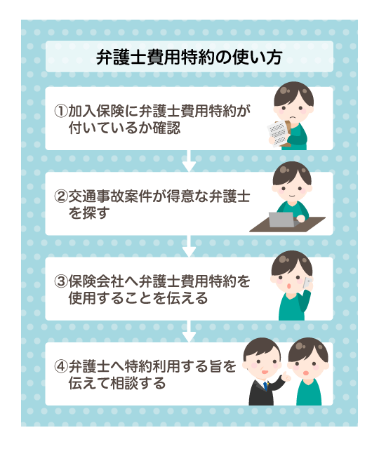 弁護士費用特約の具体的な使い方について、ご説明します。