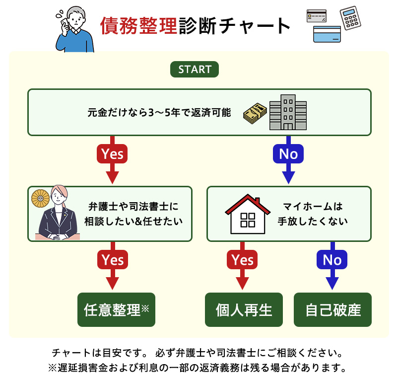 債務整理は、借金の金額や収入、財産の状況によって優先すべき手続きが異なります。